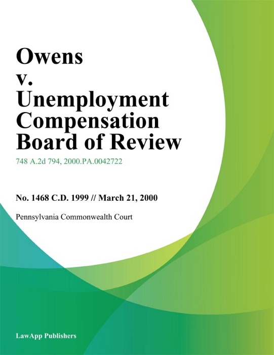 [DOWNLOAD] "Owens V. Unemployment Compensation Board Of Review" by Pennsylvania Commonwealth Court " eBook PDF Kindle ePub Free